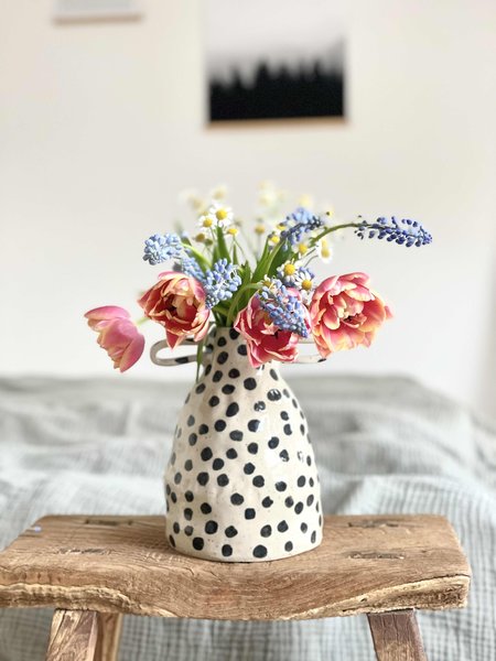 Die Lieblingsvase von @wohnliebe_4 hat ihren Titel zurecht verdient: Mit ihrem schwarz-weißen Pünktchenmuster setzt sie Frühlingssträuße gekonnt in Szene. Zum Valentinstag durften bei @dimorare.wohnen frische Tulpen in der Foldevase von Tage Andersen einziehen.