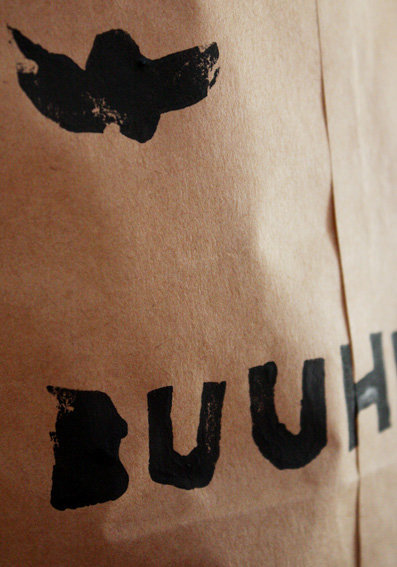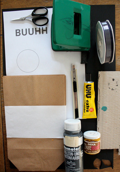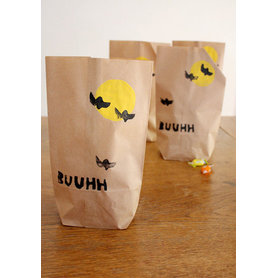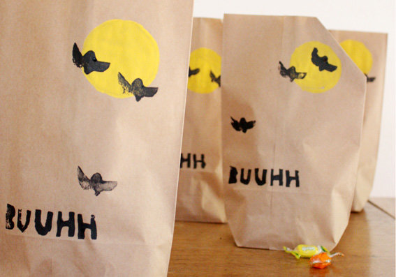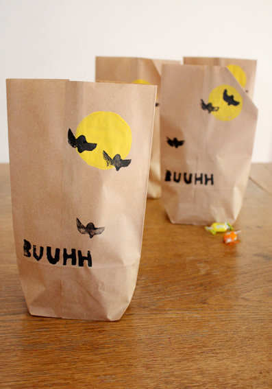 Halloween, das von irischen Einwanderen nach Amerika gebracht wurde, und dort neben Weihnachten und Thanksgiving eines der wichtigsten Feste ist, hat sich seit einigen Jahren auch in Deutschland eingebürgert. Was man in meiner Kindheit noch nicht kannte, ist heute ganz normal. Selbst für Kindergartenkinder finden schon Halloweenpartys statt. Ob man den Brauch nun gut findet oder nicht – man kann sich ihm kaum entziehen, vor allem, wenn man Kinder hat. Für die Kleinen ist es ein Riesenspaß... Und so habe ich zum Einsammeln von Süßem auf der Website von Martha Stewart diese witzige Papiertüte für Halloween gefunden, die ich nachgebastelt habe. Auch für Nicht-Halloween-Feierer ist das eine hübsche Anregung – man kann in solchen selbst bestempelten Tüten nette Kleinigkeiten schön verpacken.