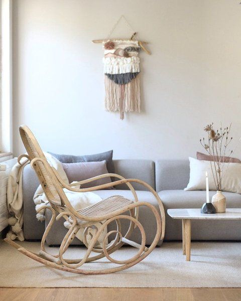 Und wie geht das skandinavische Wohnzimmer? Möbel aus Holz oder Bambus, dazu Wollplaids in hellen, gedeckten Farben und ein paar schöne Äste vom Waldspaziergang. Auch hier heißt es wieder: Weniger ist mehr! Dazu ein kleines Accessoire an der Wand, wie das Makramee von @-wundernest- , und ein weicher Teppich.