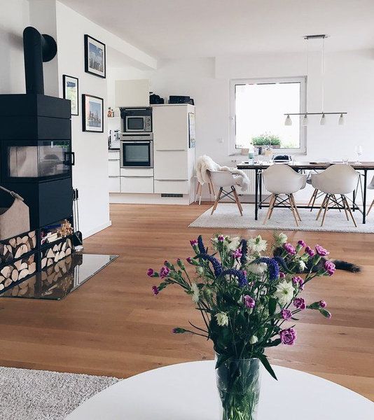 Einen klaren, definierten Stil gibt es bei der 38-jährigen @Stefanie Vö nicht – wenig Schnickschnack passt hier wohl am besten. Seit eineinhalb Jahren wohnt sie mit ihrem Mann und ihren beiden kleinen Kindern in ihrem neu gebauten 180-Quadratmeter-Haus in der Nähe von Paderborn. Interessant: Ihr Faible für originale Muster aus den 60er- und 70er-Jahren, wie wir es zum Beispiel auf der Tapete vorne im Bild sehen.