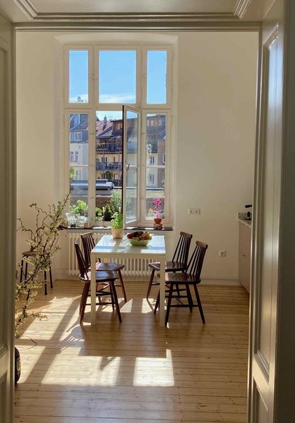 Ich heiße Jenny (34), arbeite in der Modebranche und wohne mit meinem Freund in einer Altbauwohnung von 1896 mit alten Dielen, großen Fenstern und 3,88 m hohen Decken in Köln. Ich kann mich nur sehr schlecht auf wenige Wörter reduzieren, aber ich würde meinen Wohnstil als Mix & Match aus Designklassikern und Vintage-Funden beschreiben. Außerdem sind mir Bücher, Kunst, Platten und große Pflanzen wichtig.