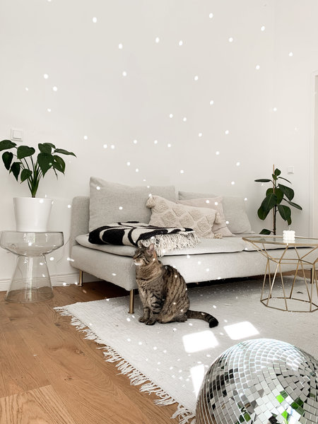 Ich heiße Agnes (37), aber alle nennen mich Agi, und ich lebe mit meinem wunderbaren Mann in Berlin. Ursprünglich nur als vorübergehende Lösung gedacht, leben wir immer noch in meiner 54 qm großen Wohnung, die ich bereits als Single nicht lange bewohnen wollte. Irgendwie hängen wir wohl aneinander. Mein Wohnstil ist farbenfroh, eigensinnig und voll positiver Energie. Unser Zuhause ist wie ein Antidepressivum mit Discokugeln, die kleine Funkel versprühen, oder wie wilde Projekte mit Bauschaum.