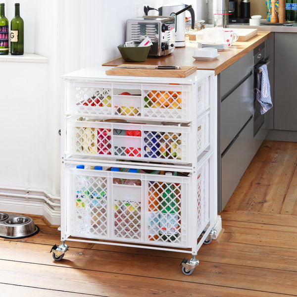 Ob Geschirr oder Lebensmittelvorräte, Wäsche oder Büroutensilien – viel Stauraum, der auch noch gut aussieht, ist sowohl in der Küche als auch im Bade- oder Arbeitszimmer Gold wert. Das in drei Farben und drei Höhen erhältliche SCHUBLADENREGAL STELLAGE lässt sich mithilfe von Verbindern auch wunderbar stapeln. Die stapelbaren Behälter STAUKISTE von MAGAZIN können ebenso wie andere Systemkisten für STELLAGE verwendet werden.
