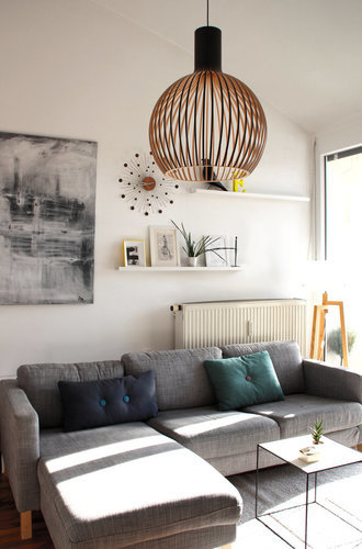 Ich lege großen Wert auf Ordnung und intelligenten Stauraum. In meiner kleinen Wohnung muss ich immer gut überlegen, welches Möbelstück in welcher Größe einziehen darf. Sie wirkt dank der Raumhöhe aber zum Glück trotzdem recht großzügig. Und die offene Gestaltung des Ess-Wohnbereiches lässt sogar zu, dass ich meine Liebe für große Leuchten voll ausleben kann.