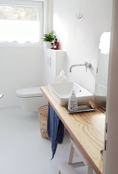 Sauber, hell und aufgeräumt: Weiße Böden und Wandfliesen zählen nicht umsonst zu den Klassikern in der Badezimmergestaltung. Um den Raum trotzdem gemütlich und nicht steril wirken zu lassen, setzen @Sonnenleni und @un.verleichtbarkeit auf warme Holzelemente.
