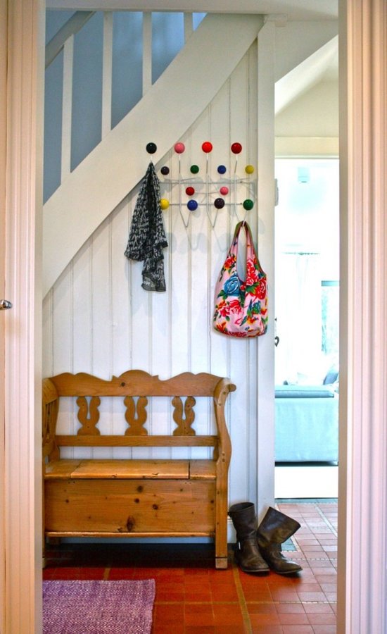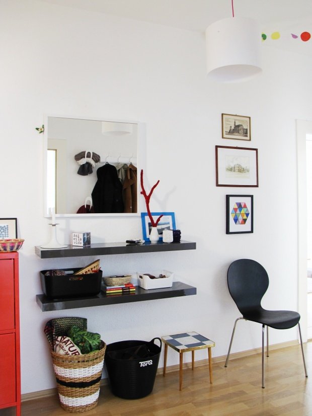 Ich kann es nur immer wieder betonen: Multifunktionalität ist das Zauberwort. Stauraum in und auf der Kommode, Regalleisten, die sowohl zu Dekorationszwecken (mit Kunst und Fotos) oder auch als praktische Ablage für Schlüssel und Co. benutzt werden können. millie82 verfügt im Flur über ein Board, das sowohl von innen als auch außen bespielbar ist - und die Mitglieder ankasu und nosh07 beherbergen praktische Truhenbänke, AUF denen man sich zum Schuhzubinden niederlassen kann, und IN denen man außerdem Regenschirm, Gummistiefel, Schal und Mütze verstecken kann. Apropos Schal und Mütze: Mitglied noonja hat sich dafür eine clevere Lösung ausgedacht. Sie klammert die Winterwärme einfach an eine feste Kordel!