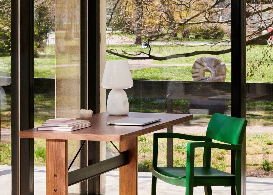 Die organisch geformte Apollo-Tischleuchte (415 €) aus mundgeblasenem Opalglas sorgt für weiches, stimmungsvolles Licht. Die Pao-Serie hat mit der Pao-Stehleuchte (455 €, verschiedene Farben) des japanischen Designers Naoto Fukasawa Zuwachs bekommen. Inspiriert von traditionellen mongolischen Pao-Zelten sorgt die dimmbare Leuchte aus Stahl für atmosphärisch-warmes und blendfreies Licht.