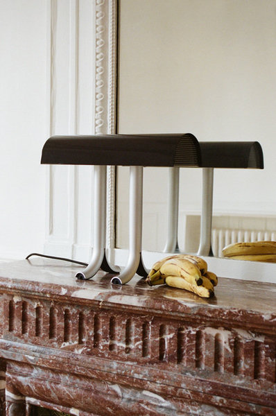 Vertrauter Stil neu interpretiert: Die Anagram-Tischleuchte (295 €) des britischen Designers Sam Weller erinnert mit dem langen, geschwungenen Schirm sowie der glänzenden Farbe an Bank- und Bibliothekleuchten. Der Sockel aus eloxiertem Aluminium zeigt jedoch, dass die klassische Form weitergedacht wurde.