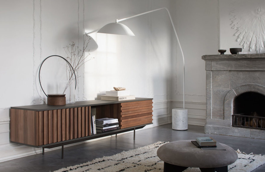 Das schicke Sideboard von Peter Fehrentz verbindet die angesagte Lamellenoptik mit dunklem Walnussholz. Es ist in zwei Größen erhältlich und bietet reichlich Stauraum für Bücher, Deko oder die kleine Hausbar. (PR-Bild)