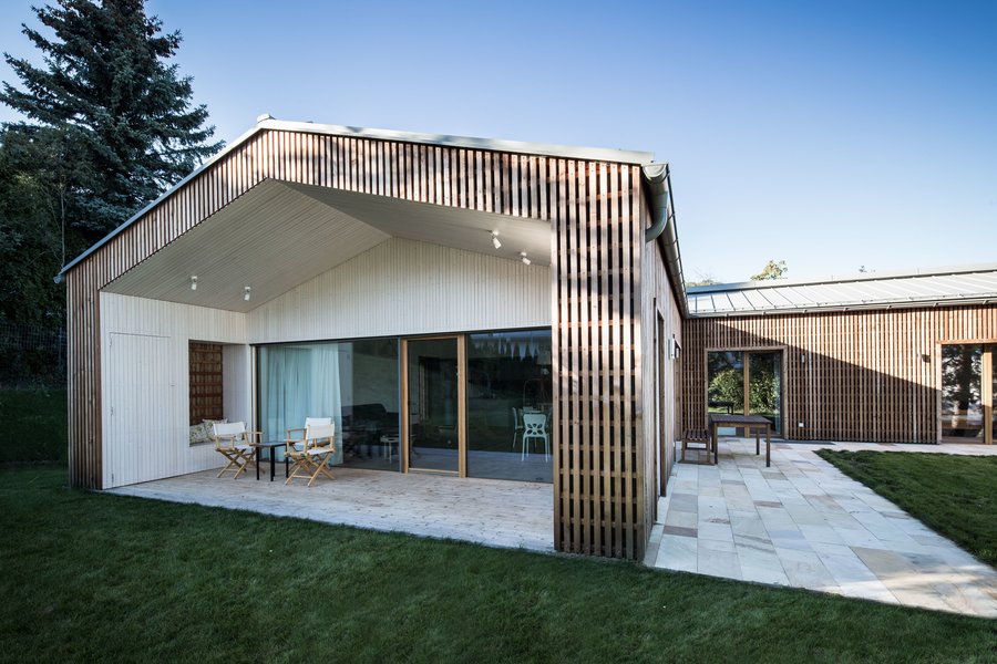 @Alice Geiger hat sich für senkrecht verschraubte Lamellen entschieden, die ihrem Haus optisch Höhe verleihen. Der Terrassenboden aus Holz fügt sich perfekt in die Gesamtkonstruktion ein, wirkt warm, einladend und gemütlich.