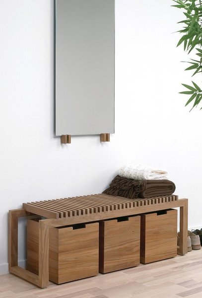 @Jacqueline Thoma s NORDKISA-Kleiderschrank von IKEA kombiniert skandinavisch-schlichte Linien mit asiatischem Stil: Die luftige Schiebetür aus Bambus lässt das Schrankinnere offen, aber aufgeräumt wirken. In @Casa Coulon s Flur bietet die hölzerne Lattenbank Platz zum Ankommen.