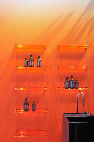 Leuchte Mantis, hier bei arte zu bewundern, beleuchtet bei agape das Waschbecken, das an ein Ausgussbecken erinnert. Beleuchtete Spiegel sind auf der Messe viel zu sehen. Und natürlich dürfen die Details im Bad nicht fehlen, wie beispielsweise Duftkerzen von Cabourg A.V. ...