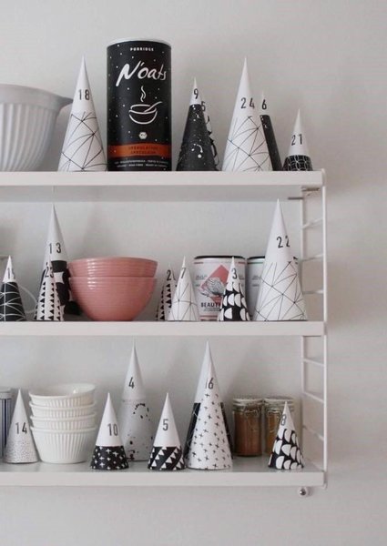 Statt kleiner Köstlichkeiten gibt es bei @bildschœnes 24 nette Gesten und Gutscheine in Zettelform, die zusammengerollt auf die Rückseite der Kartonbäumchen geklebt werden. Mit Stempeln oder Zahlenaufklebern durchnummerieren – fertig ist der Weihnachtswald voller Überraschungen! @hejsvenja s kleine Bäumchen in monochromem Design machen nicht nur Kinder neugierig.