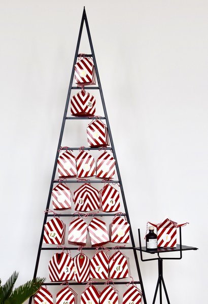 Für ihren Adventskalender hat @Herzstück die kleinen Boxen aus dem letzten Jahr verwendet, mit Tannenbäumchen geschmückt und hübsch auf einer Holzleiter verteilt. @oceanside s schicker Typoadventskalender für ihren Mann kommt von Herzen, aber ganz und gar unkitschig daher.