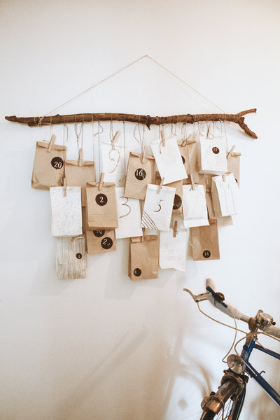 Wandschmuck und Weihnachtsdeko in einem: @FräuleinOtten hat ihren selbst gemachten Adventskalender an der Holzvertäfelung im Flur angebracht. @JohannaBrüggemann s Adventskalender ist an einem Ast über der Tür befestigt. Jetzt noch ein Mistelzweig dazu und das weihnachtliche Ensemble ist perfekt!