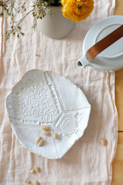 Hübsch gedeckter Nachmittagstisch mit selbst gemachten Tellern und Tassen bei @oceanside . @dieartige konnte sich zum Muttertag über diese wunderschöne Schale freuen, die wahrlich ein Highlight auf dem Esstisch ist.