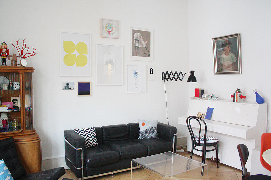 Bunt, fröhlich und voll mit Haben-will-Design: Willkommen zuhause bei Julia aka philuko in Karlsruhe! Auf 100 Quadratmetern lebt sie hier mit ihrem Mann, ihren drei Kindern, tollen Designklassikern - darunter viele, viele Stühle - und Kunstwerken, mitunter eigene Entwürfe, an denen man sich kaum sattsehen kann.