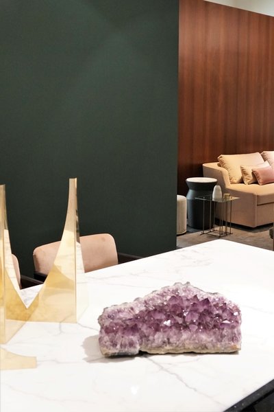 Muuto bleibt weiterhin der Farbe Rosa und Pastelltönen treu. Studiopepe zeichnete sich auch für die Gestaltung des Messestandes von Gallotti & Radice verantwortlich. Farb- und Dekotrend in einem: ein violetter Amethyst.