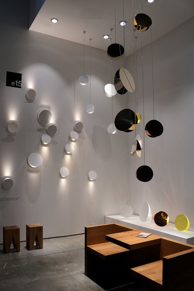 e15-Klassiker: der Backenzahn und die wunderschöne Leuchte North von Besau-Marguerre als Wand-, Hänge- und Bodenvariante. Petit Fritures goldene Mediterranea, die weiße Lanterna und ihr wohl bekanntestes Produkte: die Hängeleuchte Vertigo.