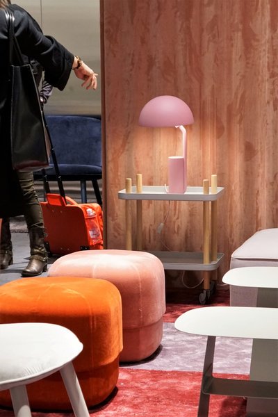 Samtige rosa und orange Circus Poufs bei Normann Copenhagen - so viel Farbe hätte man ihnen gar nicht zugetraut. Moroso wiederum ist bekannt für einen Farb- und Mustermix.