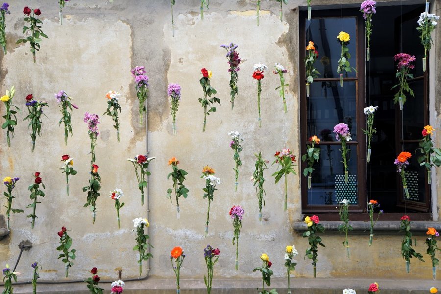 Blumenregen an der Hauswand im Viertel Brera – gesehen aus dem Showroom von Agapecasa und inszeniert von piuarch architects.