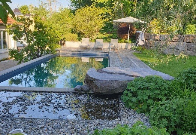 Der Pool von @Gartenstreifzug ist von Grün umringt.