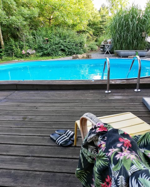Während @Raumpsychologie ihren Pool mit Holzpaneelen eingefasst hat, hat @maledesignchen den ihrigen mit Beton umrandet. @maledesignchen hat sich übrigens erst längere Zeit nach dem Hausbau für einen Pool entschieden. Ihr GFK-Pool ist sehr langlebig, formstabil und pflegeleicht. Die Flachwasserzone bietet Platz zum Entspannen und ist optimal zum Spielen für kleine Kinder geeignet. Mehr über den Pool erfahrt ihr auch in dem Beitrag über ihr Projekt Traumhaus.
