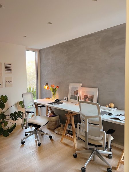 Doppelt begeistert: Nicht nur Carolin alias wohn.kultur, sondern auch ihr Mann sitzt zum Arbeiten auf dem Steelcase-Please-Air-Bürostuhl in Hellbeige-Möwengrau. „Er sitzt hier meist bis zum Abend und liebt den Stuhl ebenfalls“, schmunzelt Carolin.