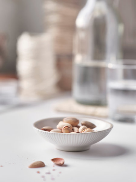 Neue VÅRDANDE-Keramiken mit besonderer Oberfläche: Die zwei kleinen Vasen (9,99 €/2er-Set) sowie die Dekoschale (4,99 €) aus Steinzeug schmeicheln durch die natürliche Haptik mit Reliefdetails.