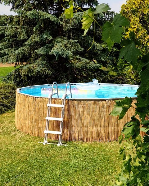 Der Untergrund sollte frei von Steinen oder anderen spitzen Gegenständen sein, damit das Kunststoffbecken nicht beschädigt wird. Die Holzterrasse von [@KatinkaA] verhindert, dass ihr Pool zu Schaden kommt. @wohnprojekt hat ihren Framepool mit Bast verkleidet – so fügt er sich noch besser in den Garten. Mit der Qualität ihres Modells war sie allerdings nicht ganz zufrieden ...
