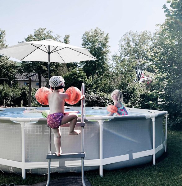 Deutlich mehr Platz als große Planschbecken bieten die Quick-up-Pools aus Kunststoff, die sich im Grunde selbst aufbauen. Der Poolkörper besteht aus einer stabilen Folie. Sobald der obere Rand aufgeblasen ist und Wasser eingelassen wird, beginnt sich das Becken von ganz alleine aufzustellen. Die Quick-up-Pools sind mit Filteranlagen erhältlich und können im Winter einigermaßen platzsparend aufbewahrt werden.