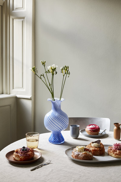 Mit den handbemalten Vasen von Madam Stoltz, die mediterranes Terrakotta mit leuchtenden Farben kombinieren, holen wir uns ein wenig Boho in unser Zuhause. Keine Neuheit, aber ein Frühlings-Must-have: die fröhlich gestreifte Steingutvase Sobremesa von HAY. Sie zelebriert das Zusammensein mit Freunden und Familie und schenkt unseren Räumen einen Hauch Frische.