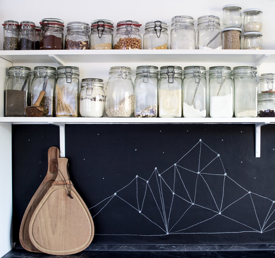 „Ich liebe Mason Jars für die Aufbewahrung offener Lebensmittel“, verrät @LaRocket . Auf Bilderleisten von IKEA verteilt, sind ihre hübschen Vorratsgläser immer schnell zur Hand. Bei @Cali78fornia locken die Vorräte in hübschen Weckgläsern, die in schlichten Holzregalen Platz gefunden haben.