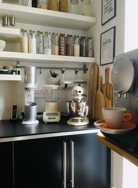 Für allzu viele Vorräte ist im Zuhause von @Lilaliv leider kein Platz. Was sie täglich nutzt, verwahrt sie aber gerne in großen Glasbehältern von IKEA. Das selbst gebaute Vorratsregal von @timaresa hält ganz viel Stauraum für Vorräte und Küchenutensilien bereit.