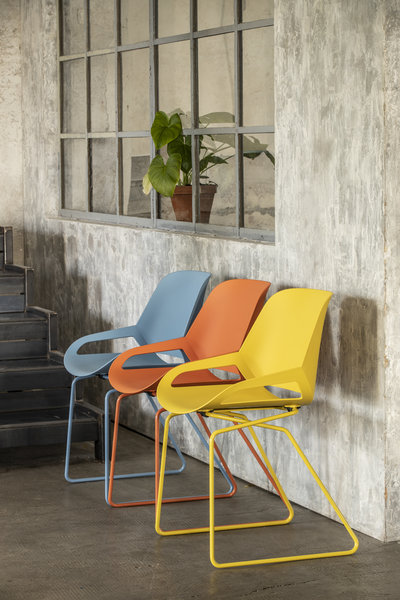 Mit dem numo lässt sich nicht nur im Homeoffice oder am Esstisch, sondern auch auf Balkon und Terrasse ergonomisch und stilvoll sitzen. Denn der numo mit Kufengestell trotzt Wind und Wetter und behält dabei seine Farben.