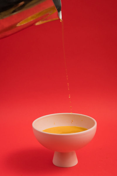 … beziehungsweise einen Tee in der Suppe: Eines der Highlights war definitiv die Kürbissuppe, zu der nicht nur Honey Rooibos gereicht wurde. Der Rooibostee kam nämlich gleich in die Suppe selbst und ergänzte das Gericht so um eine spannende Komponente.