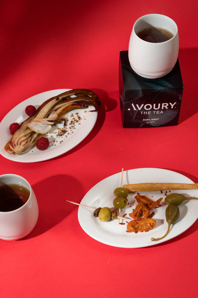Der feine Schwarztee Earl Grey war mit seinen eleganten Zitrusnoten mit echtem Bergamotteöl aus Kalabrien wie gemacht zum Grill-Raucharoma des gegrillten Radicchio di Treviso mit geräuchertem Scamorza. Zu dem säuerlichen Geschmack der Kapernfrüchte wirkte der Tee perfekt ausgleichend. Zu jeder Käsesorte gab es ebenfalls einen passenden Tee: Der chinesische Grüntee Mint Gunpowder harmonierte wunderbar mit dem Camembert, der Pearls of Jasmine mit dem Brie.