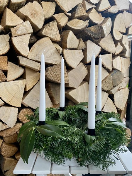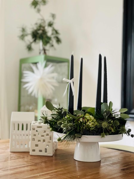 Alle Jahre wieder überlegen wir uns im November, wie unser diesjähriger Adventskranz aussehen wird. Um eure Inspiration zu wecken und eure Kreativität zu entfachen, haben wir die aktuellen Trends genauer unter die Lupe genommen: Nachdem zuletzt außer- und ungewöhnliche, mutige, farbenfrohe und hängende Adventskränze gefragt waren, geht der Trend zu filigranen, zurückhaltenden Stabkerzen in der für die Adventszeit eher ungewöhnlichen Farbe Schwarz. Wie sehr uns der Kontrast zwischen weißen und schwarzen Kerzen auf euren Adventskränzen fasziniert hat, zeigen die folgenden Beispiele.