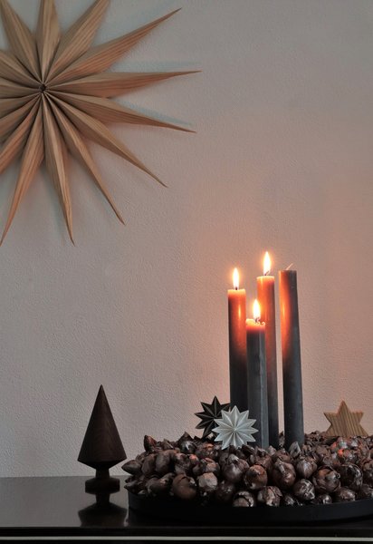 Die Lieblingsfarbe von @Apartment S6 spiegelt sich auch in seinem Adventskranz wieder. @Ula.K hat graue Stabkerzen in einer flachen Schale arrangiert.