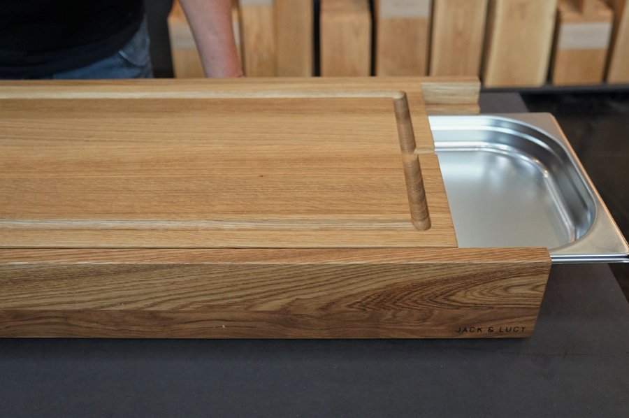 Alles Rund um Küchenaccessoires aus Eichenholz – insbesondere hochwertige Schneidebretter – haben wir bei Jack & Lucy entdeckt. Die Bretter werden aus einem Stück Eiche von Hand gefertigt und sind dementsprechend nicht verleimt. Warum alles aus Eiche? Dank des richtigen Gerbsäureanteils sind die Schneidebretter nach der Reinigung keimfrei. Außerdem besitzt Eichenholz den perfekten Härtegrad, um mit dem Messer darauf zu schneiden. Ob schlichtes Schneidebrett oder originelles Multifunktionsbrett mit Messer-Magnetstreifen und iPad-Halterung – wir sind Fans! (Halle A2 / Stand 266)