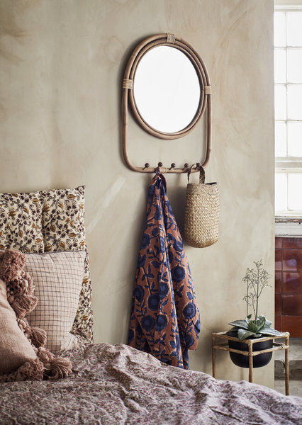 Madam Stoltz’ Rattanspiegel mit Hakenleiste ist ein herbstliches Zuhause für unsere Lieblingskleidung. Zum Pflanzgefäß aus Rattan gesellen sich kuschelige Boho-Textilien. Atelier-Vibes herrschen bei Bloomingville: Zur Bildergalerie treten der Eda-Hocker aus Albasia-Holz sowie der Ace-Kerzenhalter aus Messing und Metall.