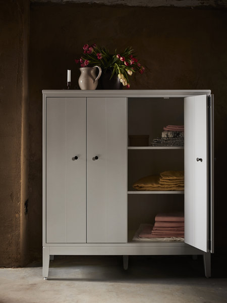 Ob Sideboard, Kommode oder Hochschrank: Die neue HAUGA-Serie kombiniert offene und geschlossene Stauraumelemente zu vielseitigen Aufbewahrungslösungen für alle Räume. Für die nachhaltigen und handgefertigten LUSTIGKURRE-Körbe aus Naturfasern wurden erstmals auch Stängelfasern der Nipapalme verwendet.
