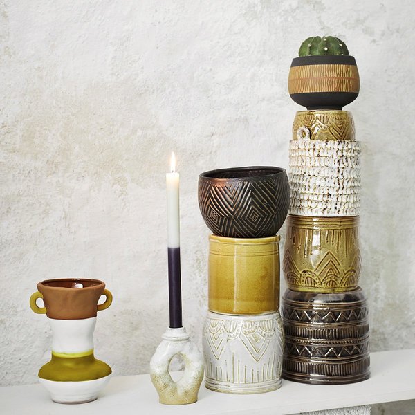 Skandinavisches Design trifft Ethno-Vibes: Auch bei den Herbstneuheiten setzt Madam Stoltz wieder auf hochwertige Keramik und stilvolle Kerzenhalter in erdigen Tönen. Die Papierleuchtenschirme in unterschiedlichen Formen sind allesamt handgefertigt und sorgen für sanftes Licht in jedem Raum.