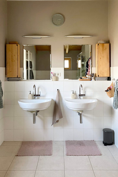 Das Haus wurde 2003 von meinen Eltern gebaut und Ende 2005 von uns übernommen. Zu Beginn hatten sich Veränderungen irgendwie „falsch“ angefühlt und so haben wir eigentlich erst in den letzten Jahren damit angefangen, zum Teil auch etwas größere Umbau- oder Renovierungsmaßnahmen vorzunehmen. Erst die Küche und nun das Badezimmer.
