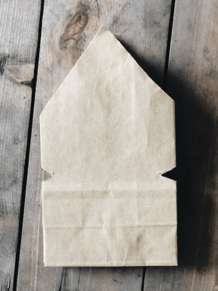 Von den Papiertüten jeweils die beiden oberen Ecken abschneiden. Orientiert euch dabei an der Tütenmitte.