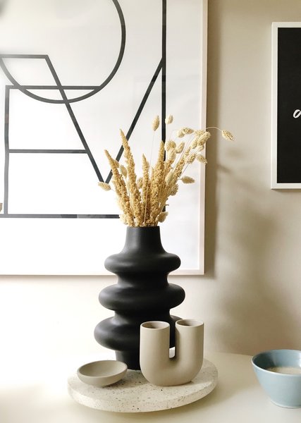 Derzeit eines der beliebtesten wellenartig geschwungenen Objekte: die Keramikvase von H&M Home wie bei @Lieblingszuhause