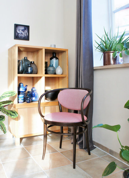 Ja, die beiden sind wie Geschwister mit zwei verschiedenen Vätern. Mein neuer Thonet steht normalerweise im Wohnzimmer an meinem Lieblingsfenster. Ich nutze ihn dort als eine Art Lesesessel, mit seiner leicht wippenden Rückenlehne geht das ganz herrlich! Zurzeit befindet er sich allerdings aus Platzgründen im Schlafzimmer – wo er mir auch sehr gut gefällt. Er bringt, trotz seiner modernen Ausführung, einen schönen Midcentury-Touch in den Raum, den ich dort vielleicht sogar noch ein bisschen ausbauen möchte.
