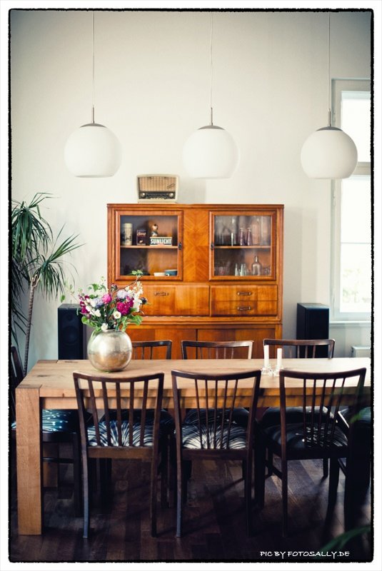 Heute sind wir zu Gast in Berlin - bei Mitglied Sallysunshine. Die freie Fotografin hat nicht nur eine wunderbare Wohnung (übrigens im Hochparterre!), sondern auch eine Schwäche für Flohmarktschätze, für Einrichtungsideen und den Stil der 50er und 60er Jahre, für (alte) Kameras und "Bildpaare und Collagen" ; -) Ihr Zuhause ist ein imposantes lichtgeflutetes Heim, dass durch perfekt ausgewählte und harmonisch abbgestimmte Möbel und Accessoires bezaubert. Ein nicht überladener Stilmix, vielmehr bewusst gesehen, gewählt, geliebt.