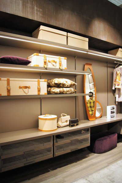 Neuheit bei USM: das Filzinnenleben für die USM Sideboards. Für die größten Überraschungen sorgten under anderem die Sideboard Türen, wie hier bei Gervasoni, die mit strukturiertem Stoff bezogenen wurden.