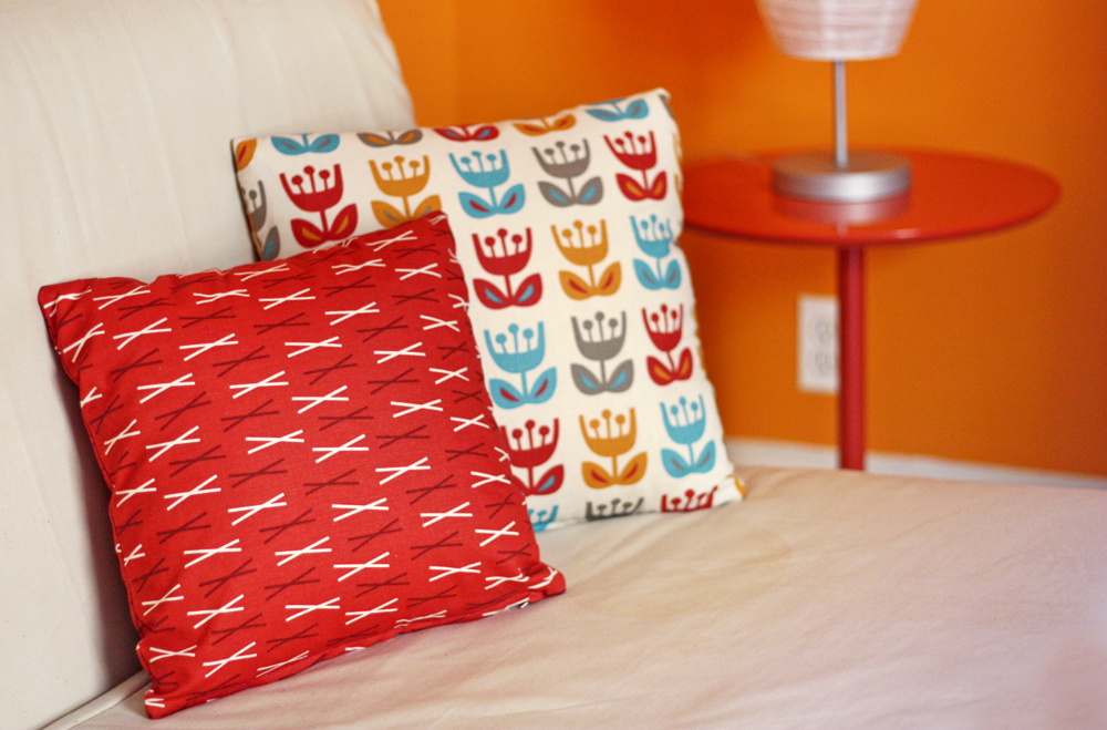 Die meisten Möbel sind modern mit klaren Linien. Ich mag großflächige Textilien mit flachen, grafischen Formen (IKEA ist mein bester Freund!). Deshalb habe ich auch einige unserer Stühle und Kissen mit lustigen Drucken bezogen. Orange ist meine Lieblingsfarbe und ich versuche viel davon in der Wohnung zu verstreuen. Ich möchte, dass mein Zuhause fröhlich und einladend wirkt. Für mich bedeutet das ordentliche und offene Räume, in denen ein paar Pflanzen, schrullige Kunstdrucke und fröhliche Textilien zusammenwirken.